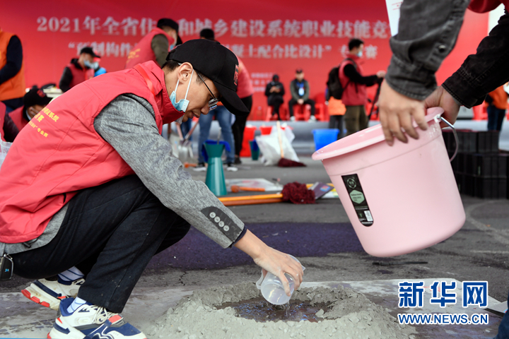 選手進行混凝土配比製作。新華網發(劉玉才 攝)