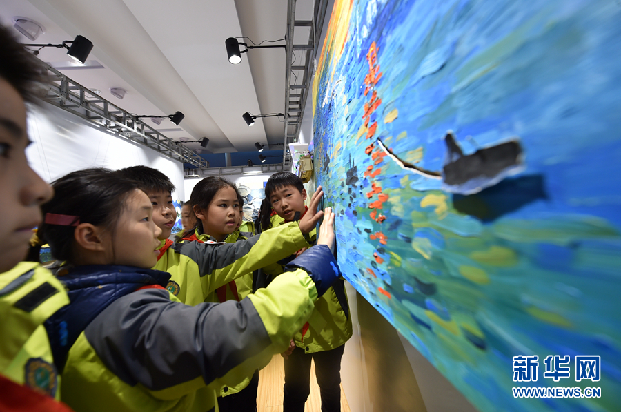 11月15日,孩子們在觀看“會動”的世界名畫。