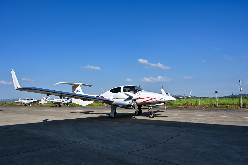 7月3日,在安徽省蕪湖市灣沚區航空小鎮,一架通航飛機準備起飛。