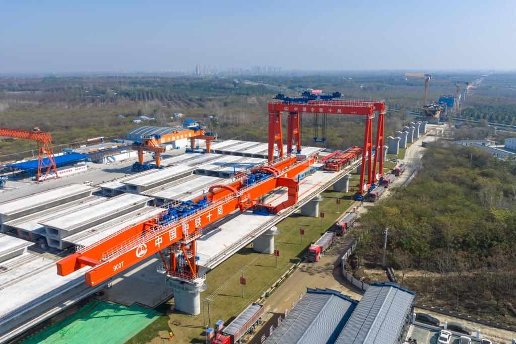 近日,合武高鐵安徽段全面進入箱梁架設階段,施工人員奮戰在架梁一線,確保重點鐵路工程建設進展順利。