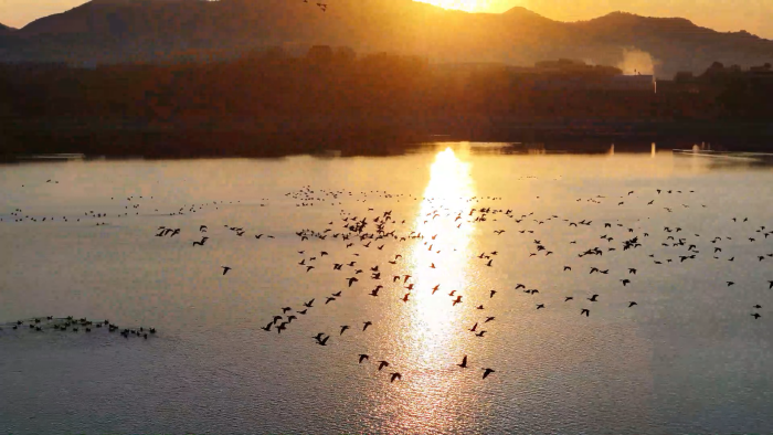 11月19日,安徽省池州市升金湖國家級自然保護區,4萬餘只候鳥在此棲息覓食,呈現一幅水清岸綠,飛鳥翔集的生態畫卷。隨着氣溫逐漸降低,升金湖迎來候鳥遷徙高峰,預計今冬來升金湖越冬的候鳥總數將達10萬隻。(吳駿 張延鶴 左澤川 攝)