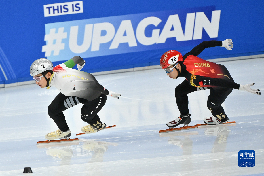 10月21日,匈牙利選手劉少林(左)和中國選手孫龍在男子500米預賽中。匈牙利選手劉少林以40秒403的成績、中國選手孫龍以40秒539的成績晉級四分之一決賽。