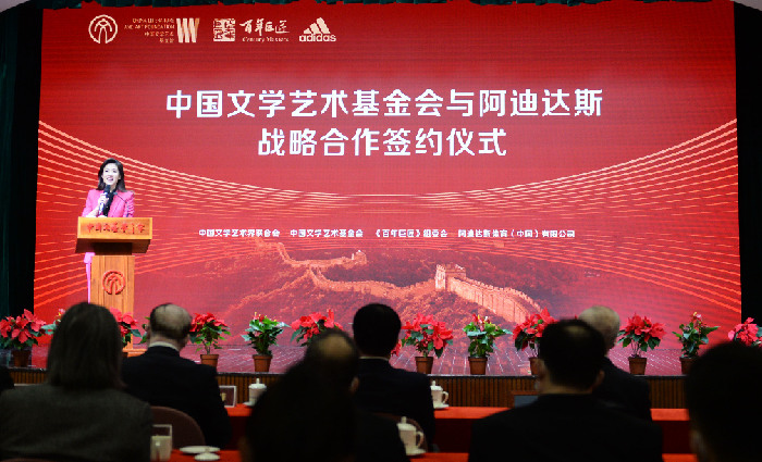 在啟動儀式現場,中國文學藝術基金會宣布與阿迪達斯達成戰略合作,中國文學藝術基金會副理事長向雲駒與阿迪達斯大中華區總經理蕭家樂代表雙方共同簽署了戰略合作備忘錄。
