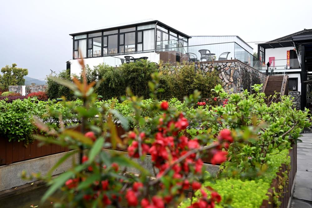 在安徽省黃山市祁門縣,380畝的西塘生態高效智慧茶園中,頭戴斗笠的採茶工人忙碌不停,雙手翻飛採摘春芽。坐落於茶園中的歷山半水民宿群同樣繁忙。