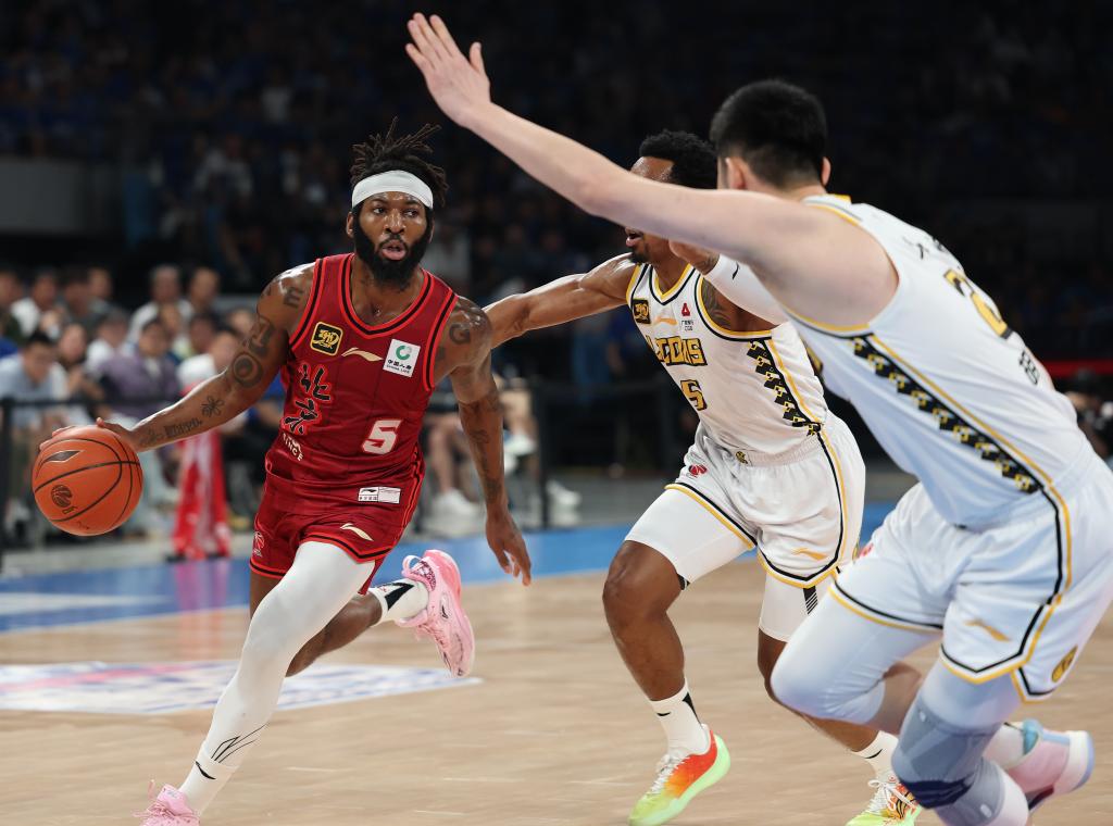 5月20日,北京隊外援傑曼(左)在總決賽第六場比賽中進攻。新華社記者 王楷焱 攝