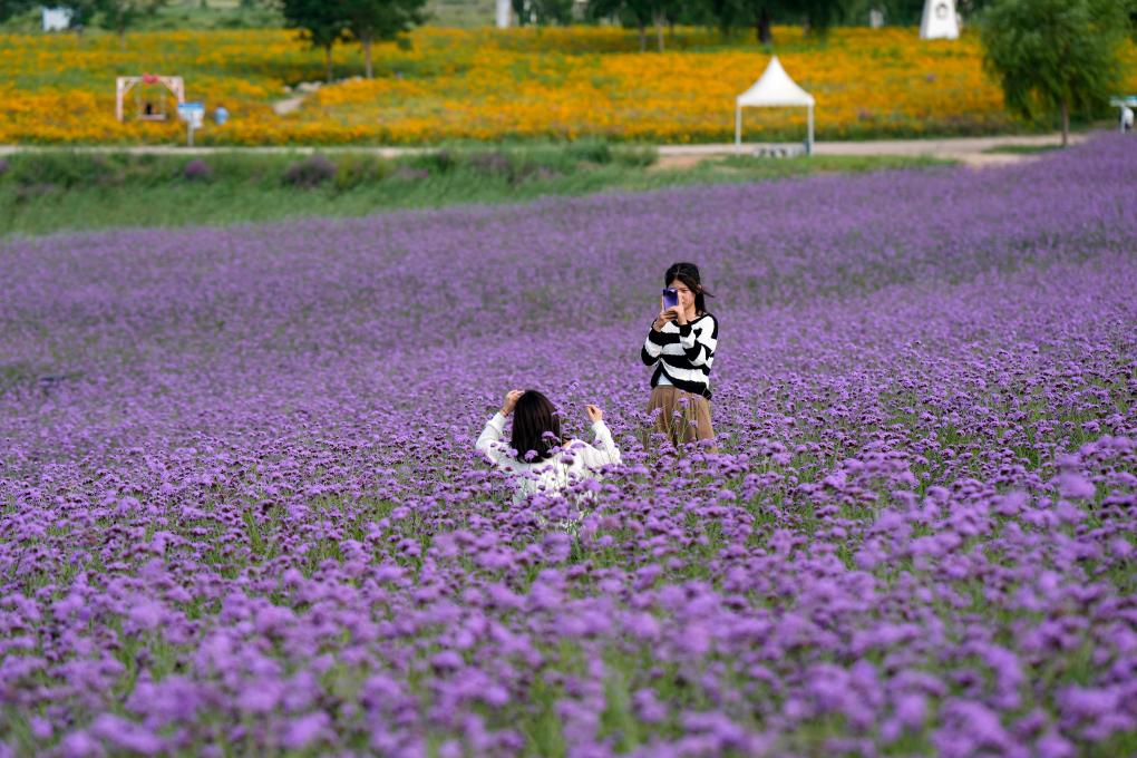 游客在寧夏薰衣草莊園游玩(8月19日攝)。初秋時節,地處毛烏素沙地邊緣的寧夏薰衣草莊園美不勝收。新華社記者 王鵬 攝