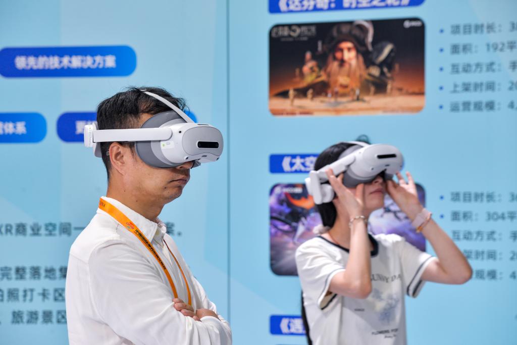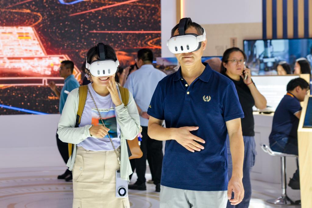 9月12日,在北京首鋼園,參展者在2025年服貿會文旅服務展館北京市廣電局展&體驗虛擬現實數智化文商旅解決方案。