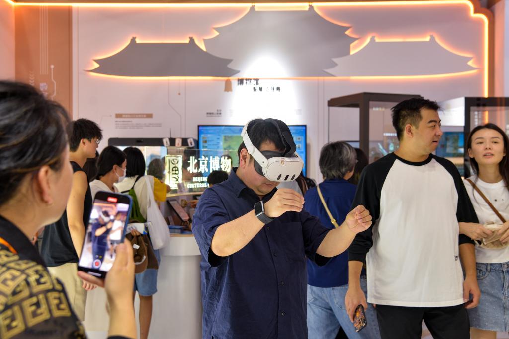 9月13日,在北京首鋼園,參展者(中)在2025年服貿會文旅服務展館北京市文物局展&體驗《看·見殷商》MR沉浸式觀展。