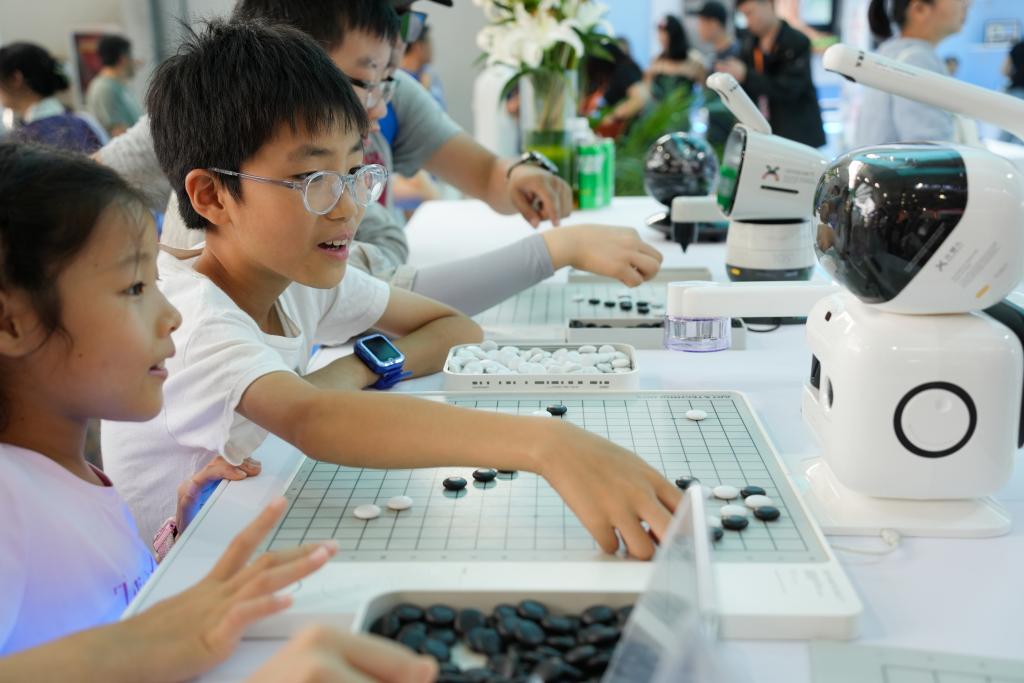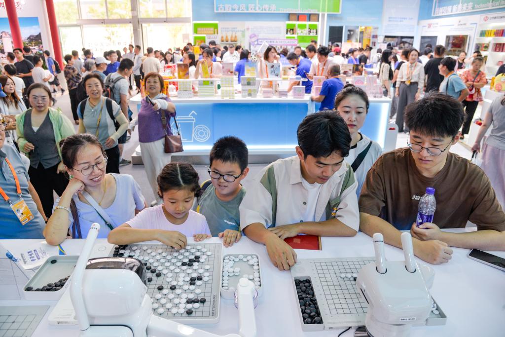 9月13日,在文旅服務專題展區經開區展&,小朋友和機器人下五子棋。