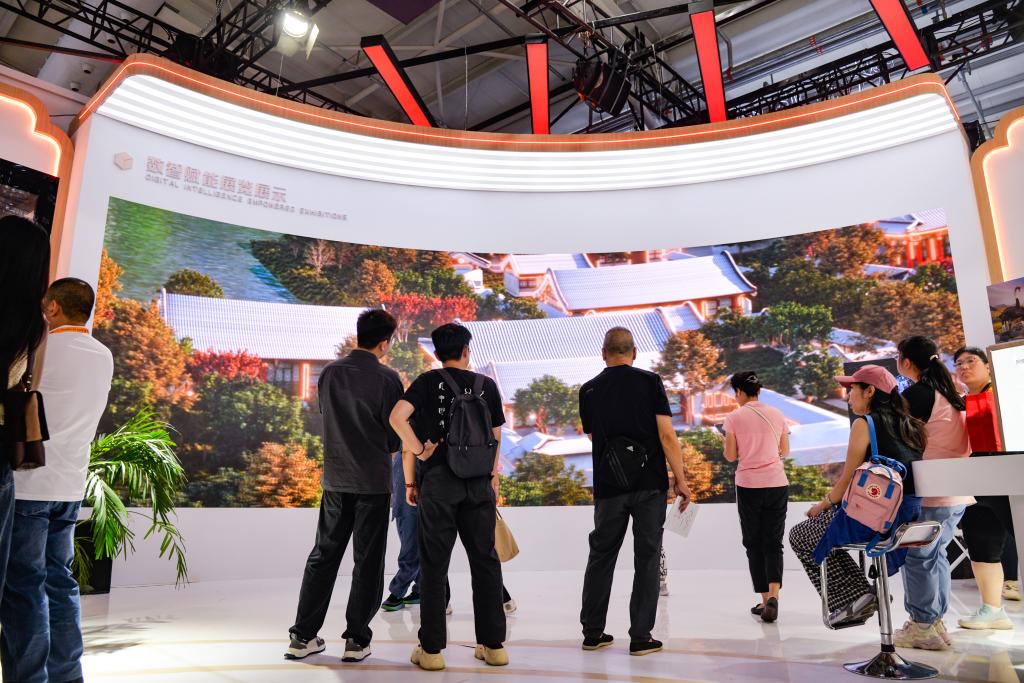 9月13日,在北京首鋼園,參展者在2025年服貿會文旅服務展館北京市文物局展&觀看、了解數智賦能展覽展示。