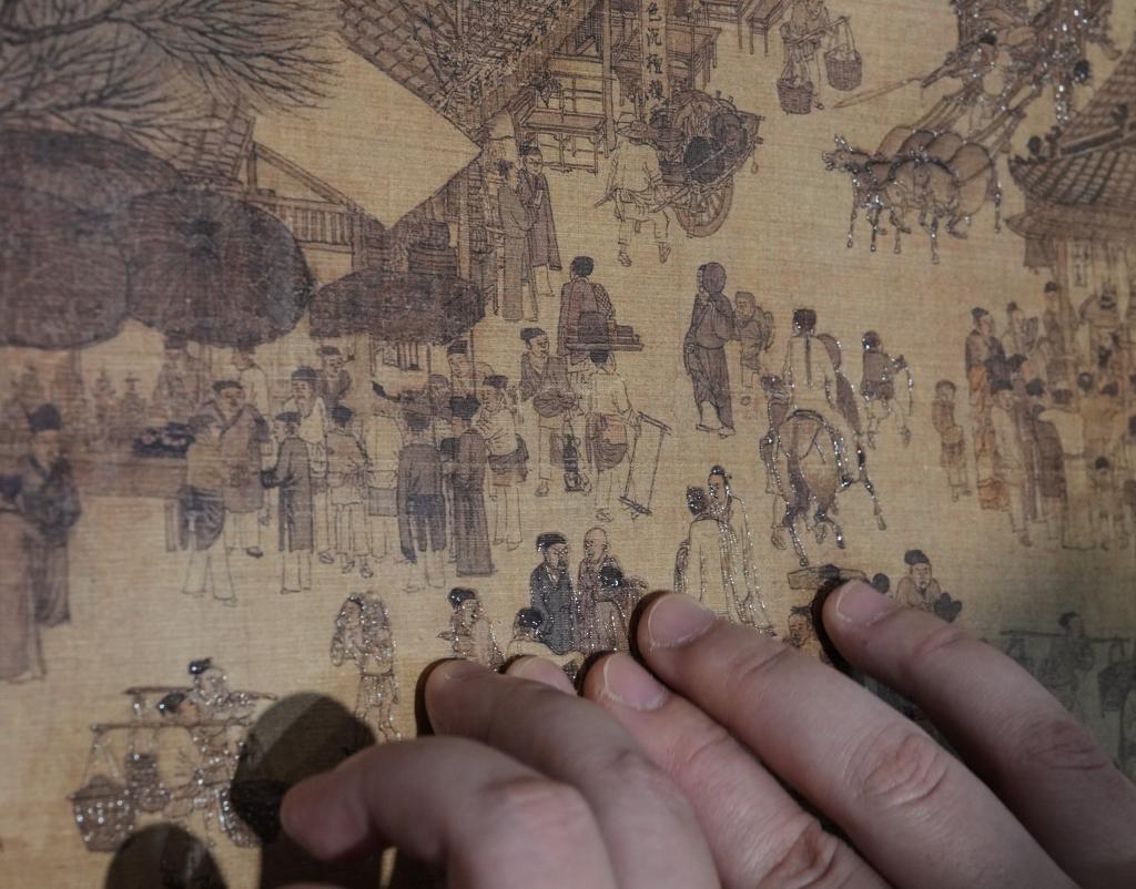 10月13日,視障人士在發布會後,欣賞無障礙版《觸摸<清明上河圖>》。
