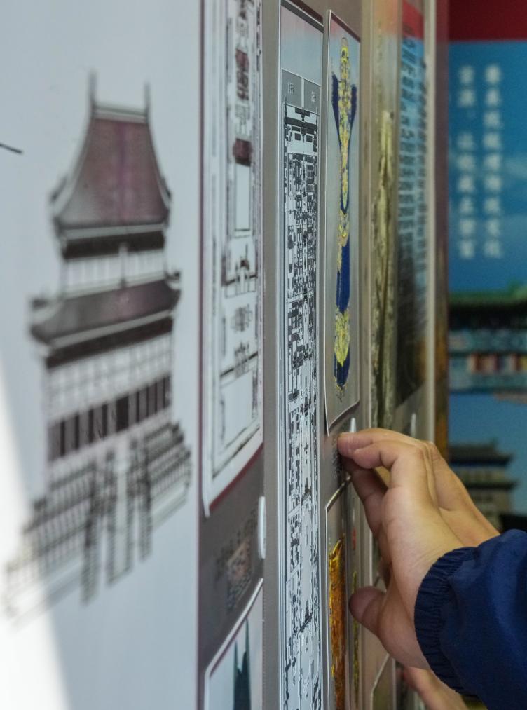 10月13日,視障人士在發布會後,觸摸北京中軸線建築模型。