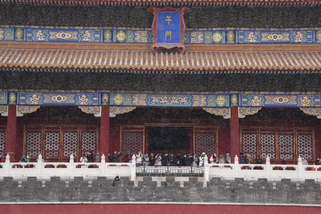 2025年12月12日,北京迎來降雪,雪中故宮風景如畫。
