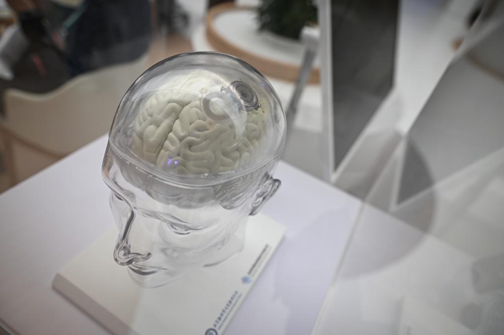 在2025中關村論壇年會上展示的“北腦一號”智能腦機系統模型,其研發企業位於昌平腦科學與腦機接口産業集聚區。(新華社記者 陳鐘昊 攝)