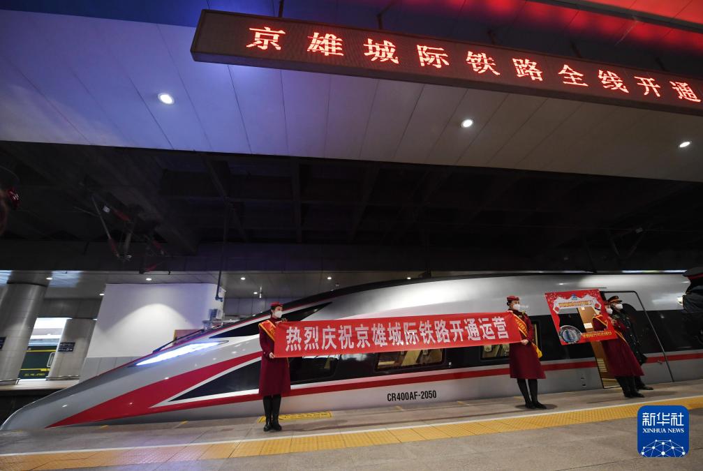 2020年12月27日,京雄城際鐵路全線貫通,從北京西開往雄安的首發列車停靠在北京西站站&。新華社記者 張晨霖 攝