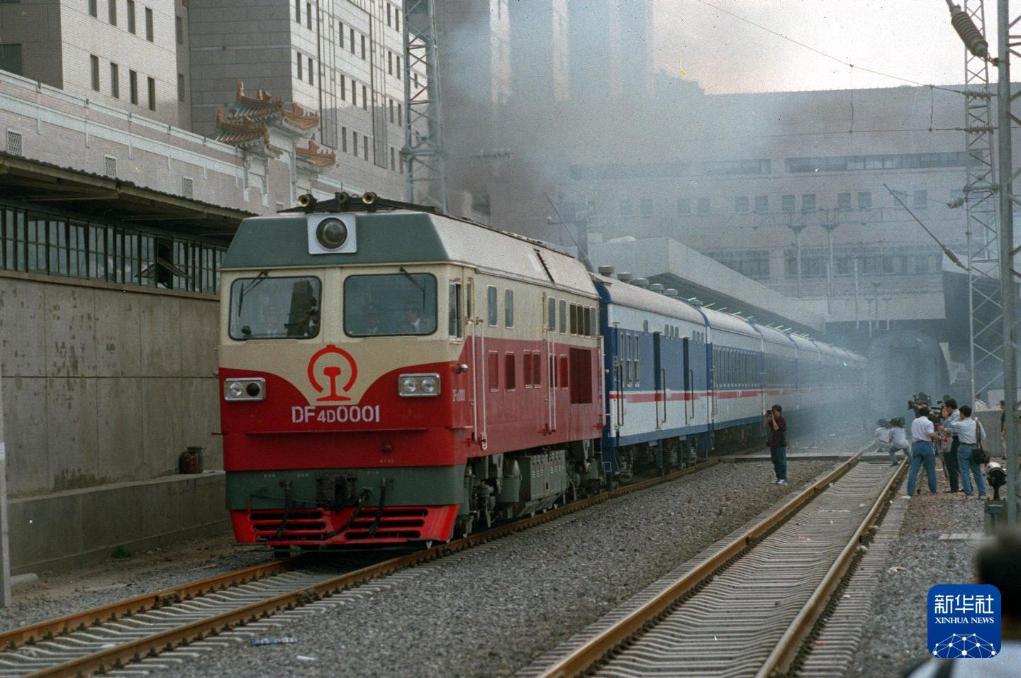 1997年5月18日,列車緩緩駛出北京西站。新華社記者 唐召明 攝
