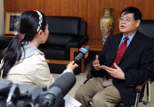 北京大學國際關係學院院長王緝思接受新華社記者採訪