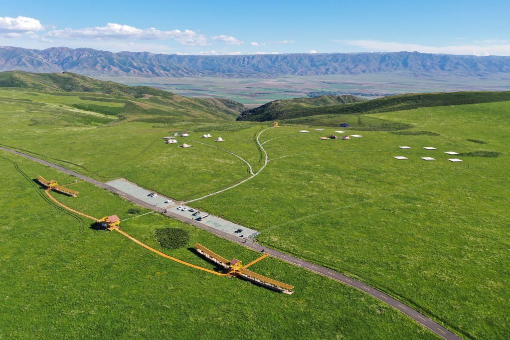 這是5月30日拍攝的新疆塔城地區額敏縣海航草原風景區(無人機照片)。