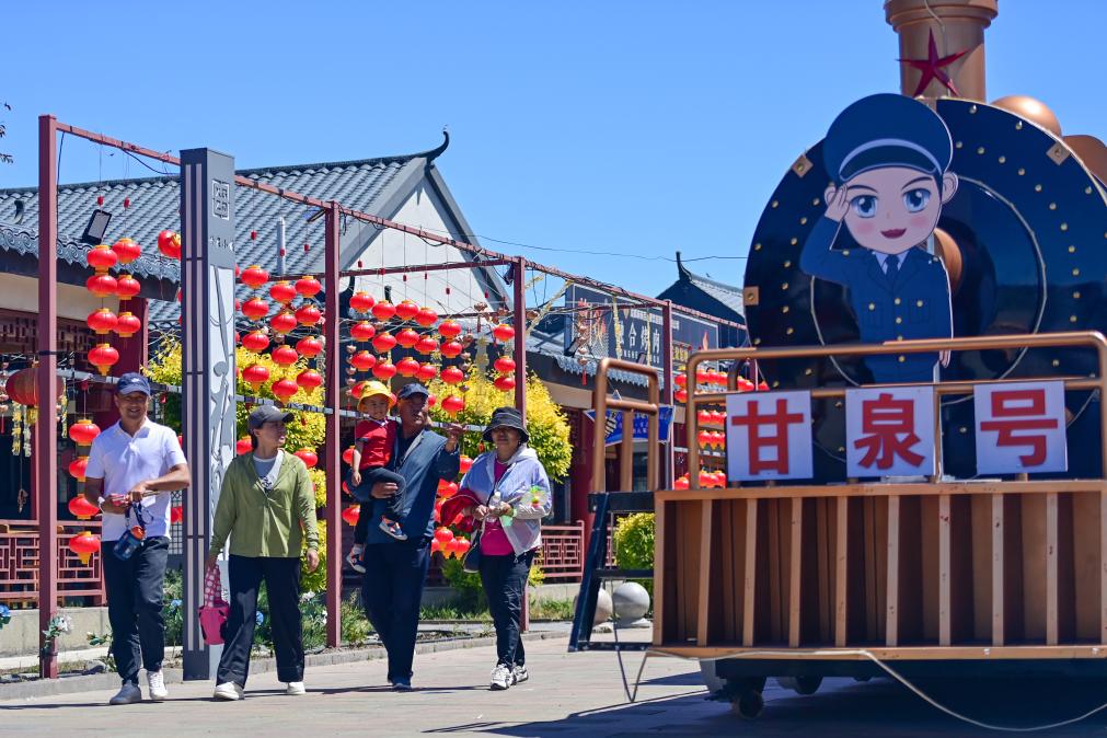 在新疆塔城地區額敏縣文化旅游品牌街巷——榆柳巷,游客在額敏記憶館參觀游覽(5月30日攝)。