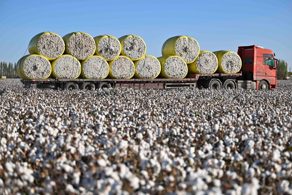在新疆生産建設兵團第六師五家渠市,貨車載着收穫的棉花行駛(9月29日攝)。