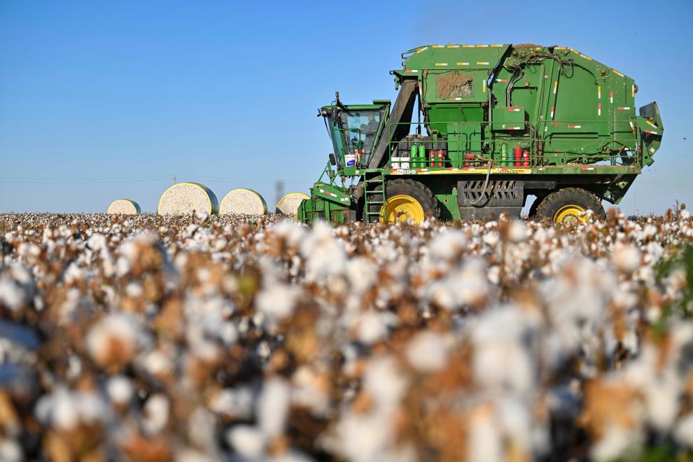金秋時節,新疆生産建設兵團1100多萬畝棉花陸續進入采收季。田間“白浪”翻滾,機器轟鳴,團場職工抓住晴好天氣,收穫棉花。