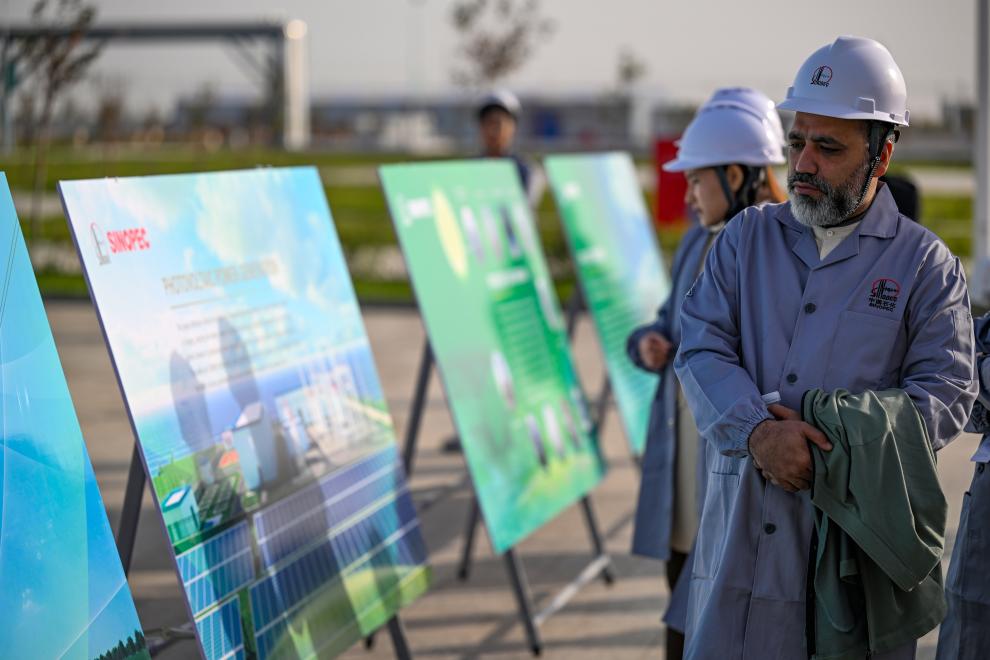 《哈薩克斯坦實業報》總編輯謝裏克·科爾茹姆巴耶夫在觀看國家能源集團綠色能源項目的展示時目不轉睛。“這裡有世界領先的綠色能源技術。”他説,“清潔能源促進了農業和工業等各産業的發展。”