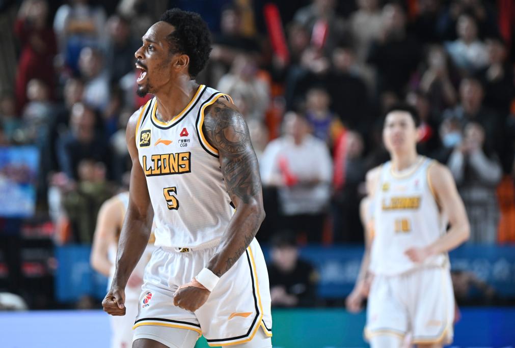 11月3日,浙江方興渡隊球員布朗在比賽中慶祝三分進球。