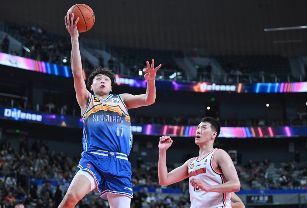 當日,在2024-2025賽季中國男子籃球職業聯賽(CBA)常規賽第38輪比賽中,新疆伊力特隊主場87比106不敵廣東東陽光隊。 新華社記者 胡虎虎 攝