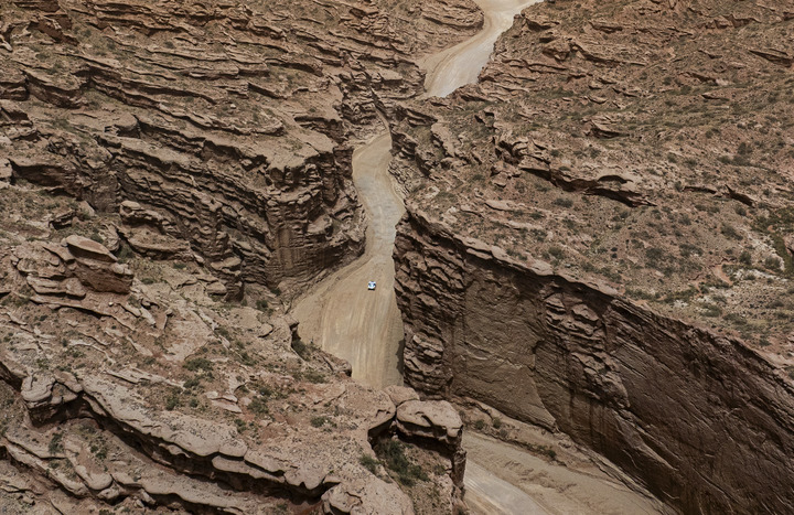 今年環塔的賽程設計有所“反轉”,開局的SS1是去年臨近尾聲的賽段。當日特殊賽段全長近160公里,車手們需要快速通過被水流沖毀的路段,而後穿越多個河道,最終在溫宿大峽谷中高速行駛衝線。