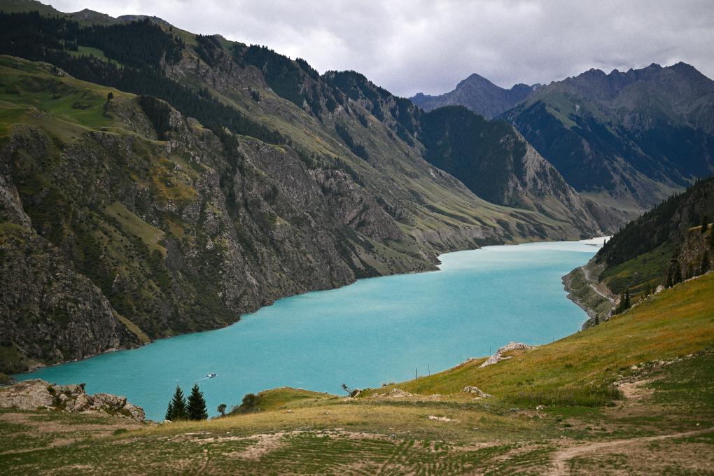 7月30日,遊船行駛在新疆伊犁哈薩克自治州昭蘇縣玉湖的水面上。新華社記者 辛悅衛 攝