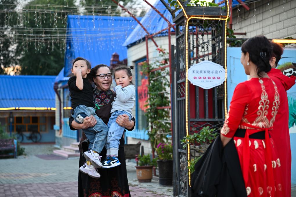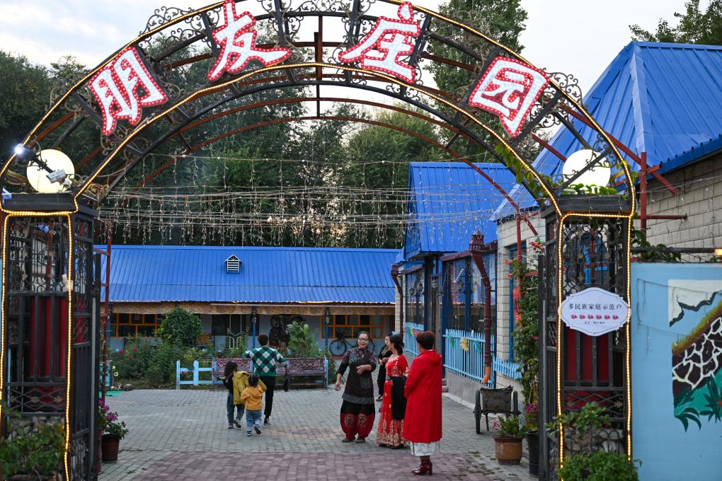 9月17日,馬秀花和多民族親朋一起走在“朋友莊園”。