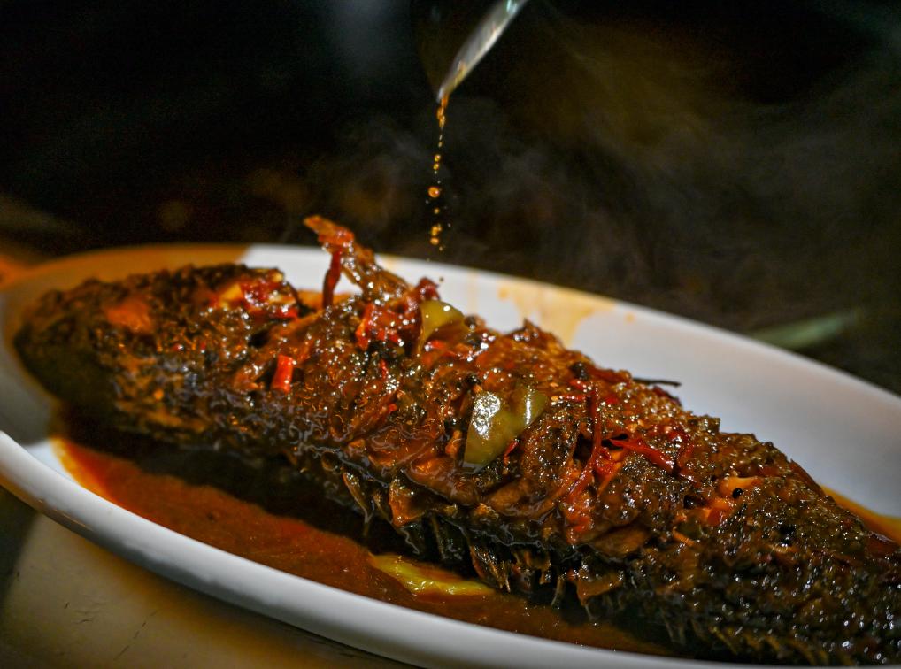 這是馬秀花製作的漢族風味的燉魚(9月17日攝)。