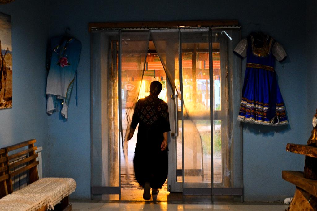 9月17日,馬秀花提着風乾肉走出涼房。