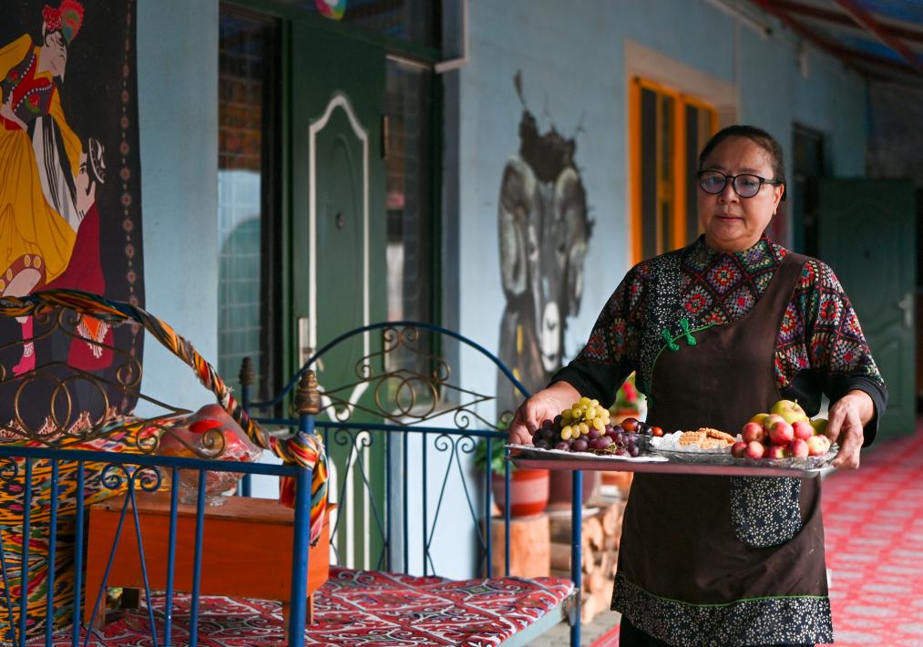 9月17日,馬秀花準備將水果端上桌。