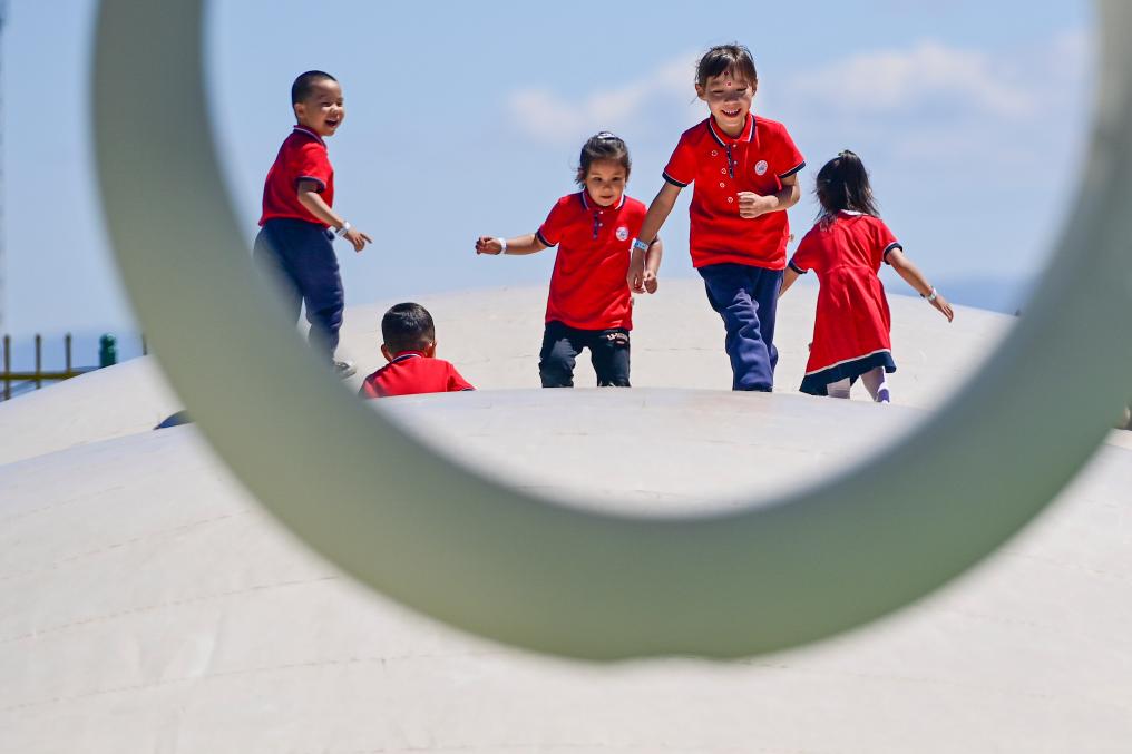 在新疆塔城地區額敏縣郊區鄉甘泉村,孩子們在花海無動力樂園玩耍(5月30日攝)。