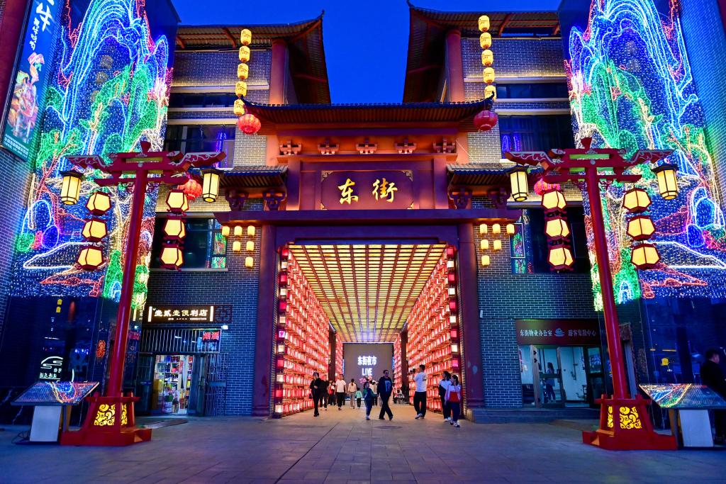 這是5月29日拍攝的新疆塔城地區額敏縣東街夜市。