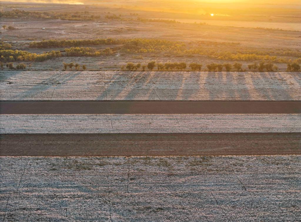 這是9月29日在新疆生産建設兵團第六師五家渠市拍攝的秋日棉田(9月29日攝,無人機照片)。