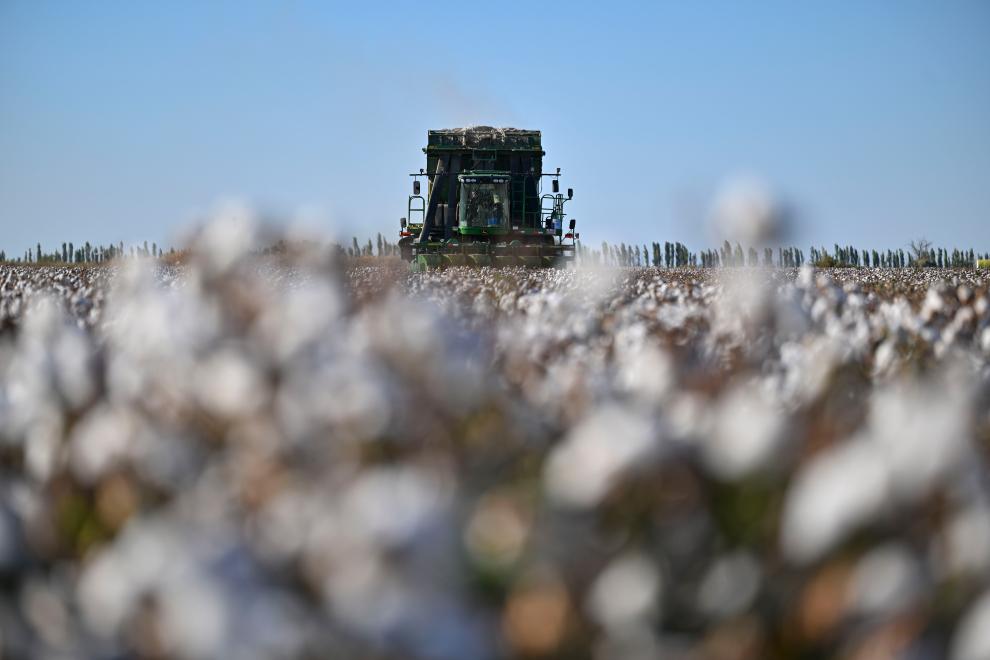 金秋時節,新疆生産建設兵團1100多萬畝棉花陸續進入采收季。田間“白浪”翻滾,機器轟鳴,團場職工抓住晴好天氣,收穫棉花。
