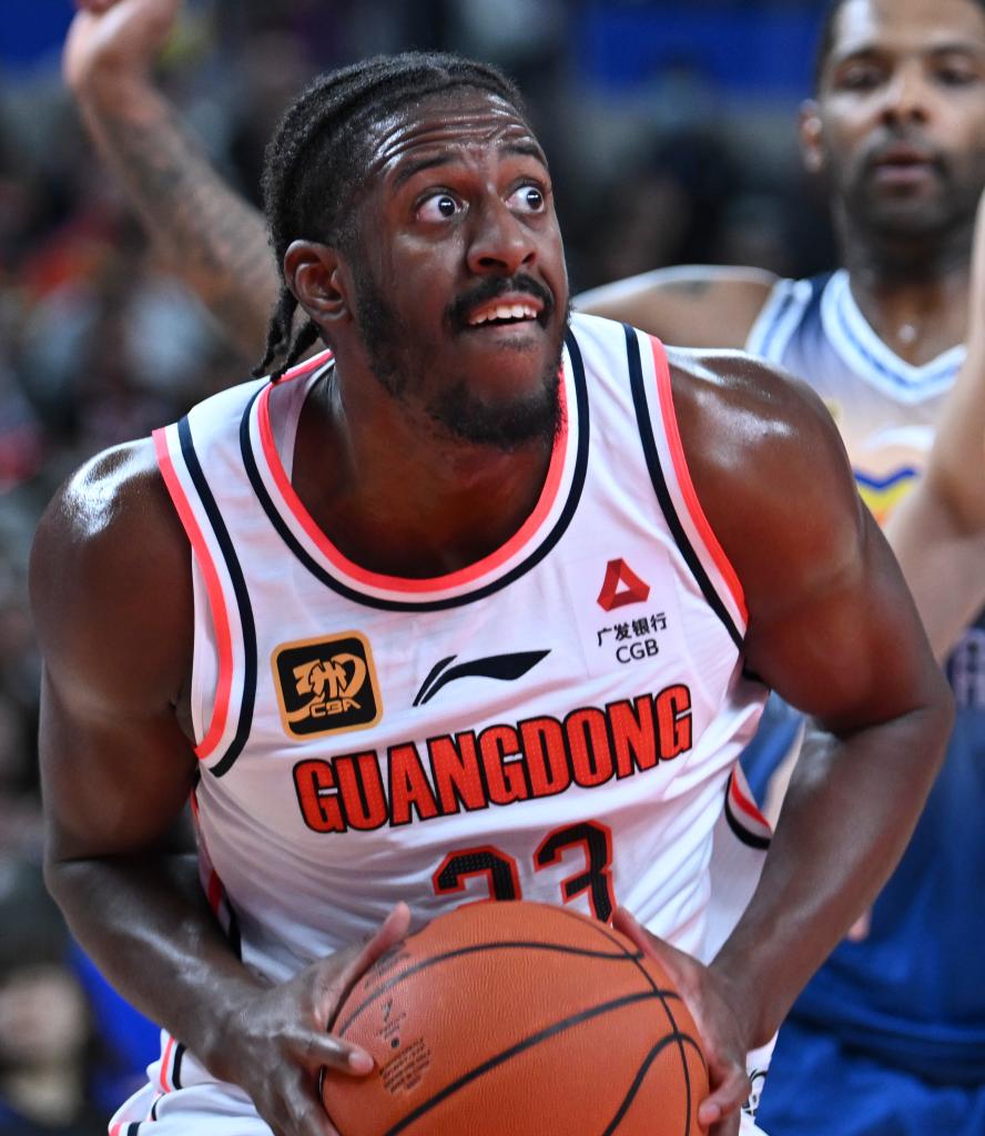 3月10日,廣東東陽光隊球員庫克在比賽中進攻。新華社記者 胡虎虎 攝