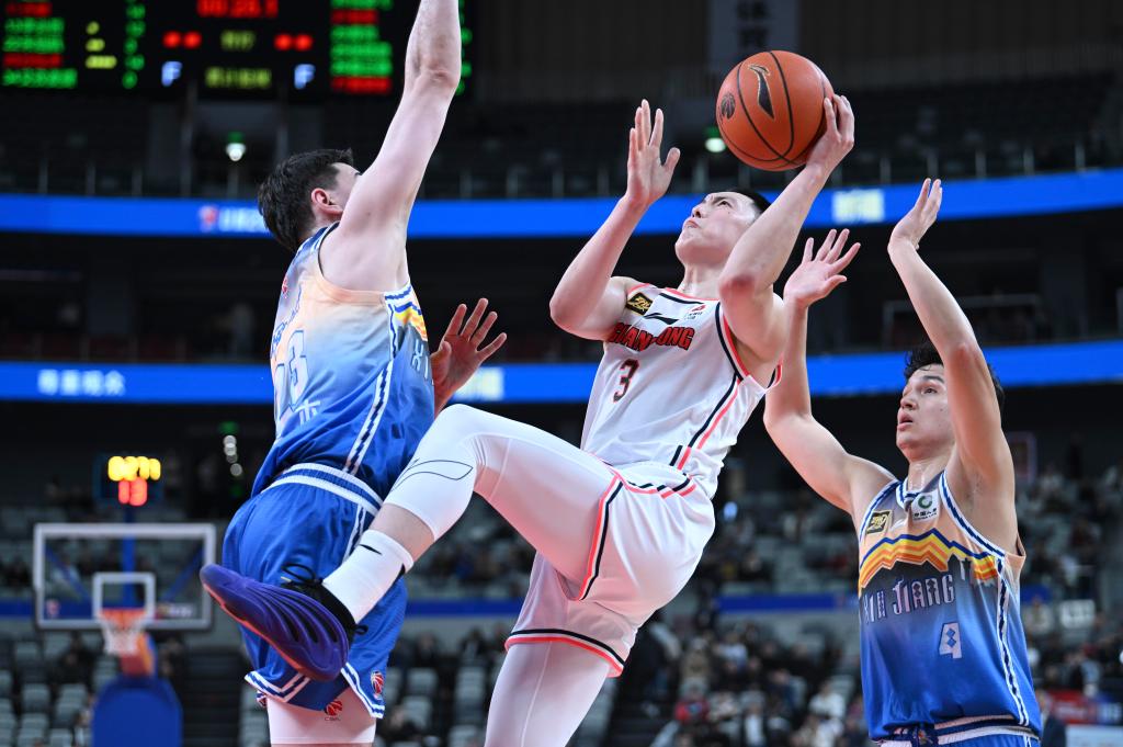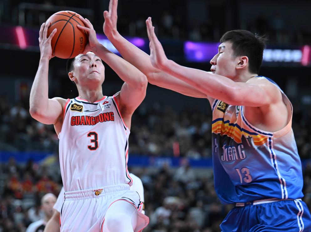 當日,在2024-2025賽季中國男子籃球職業聯賽(CBA)常規賽第38輪比賽中,新疆伊力特隊主場87比106不敵廣東東陽光隊。 新華社記者 胡虎虎 攝