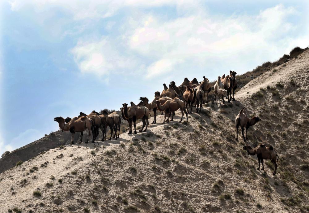 7月29日,一群駱駝在古爾圖南山景區悠閒吃草。