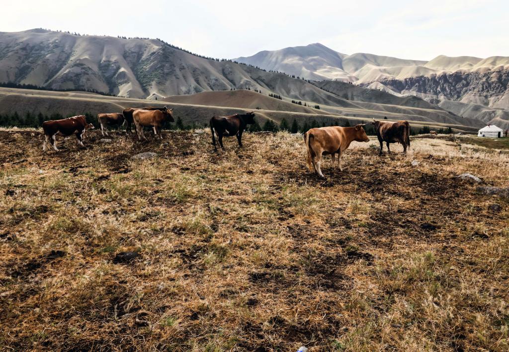 7月29日,牛群在古爾圖南山景區悠閒吃草。
