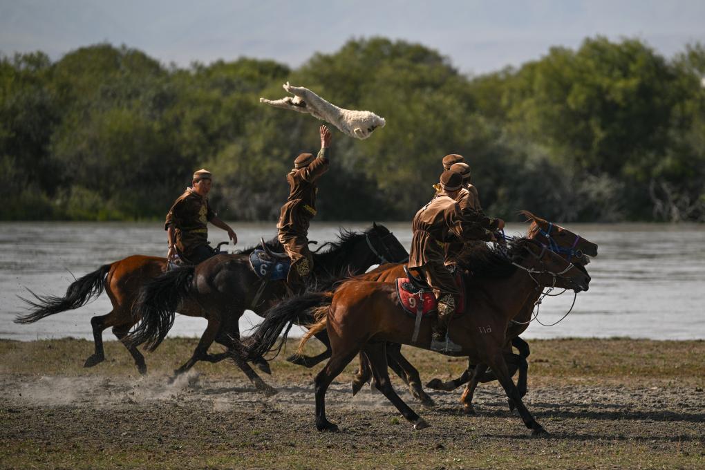 7月29日,騎手在新疆伊犁哈薩克自治州昭蘇縣天馬旅游文化園表演叼羊。新華社記者 辛悅衛 攝