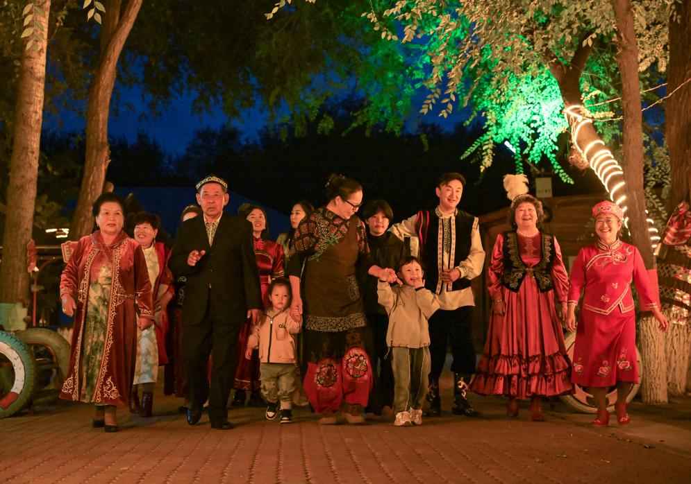 9月17日,馬秀花和多民族親朋一起走在“朋友莊園”。