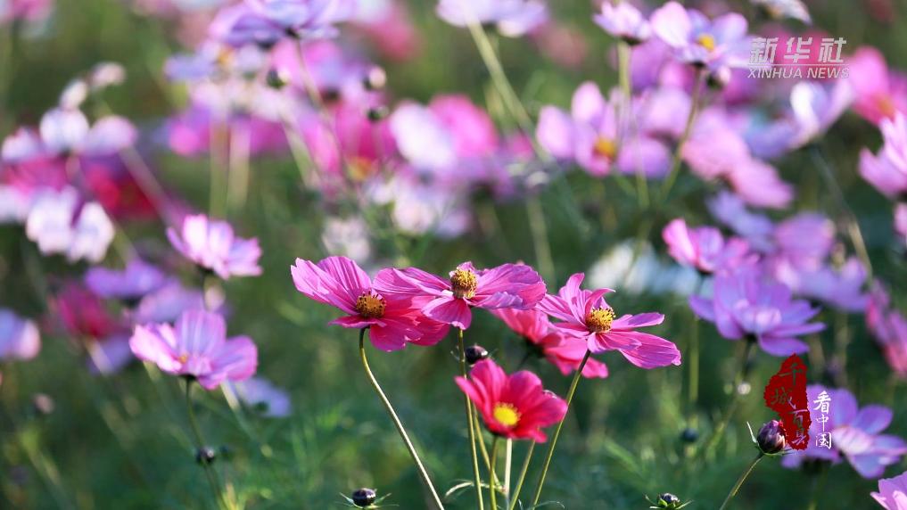 山東省東營市廣饒縣的七彩花海眼下迎來盛花期,成片的波斯菊、硫華菊等交織成燦爛的“粉色花帶”,成為市民游客休閒打卡的新晉熱門地。