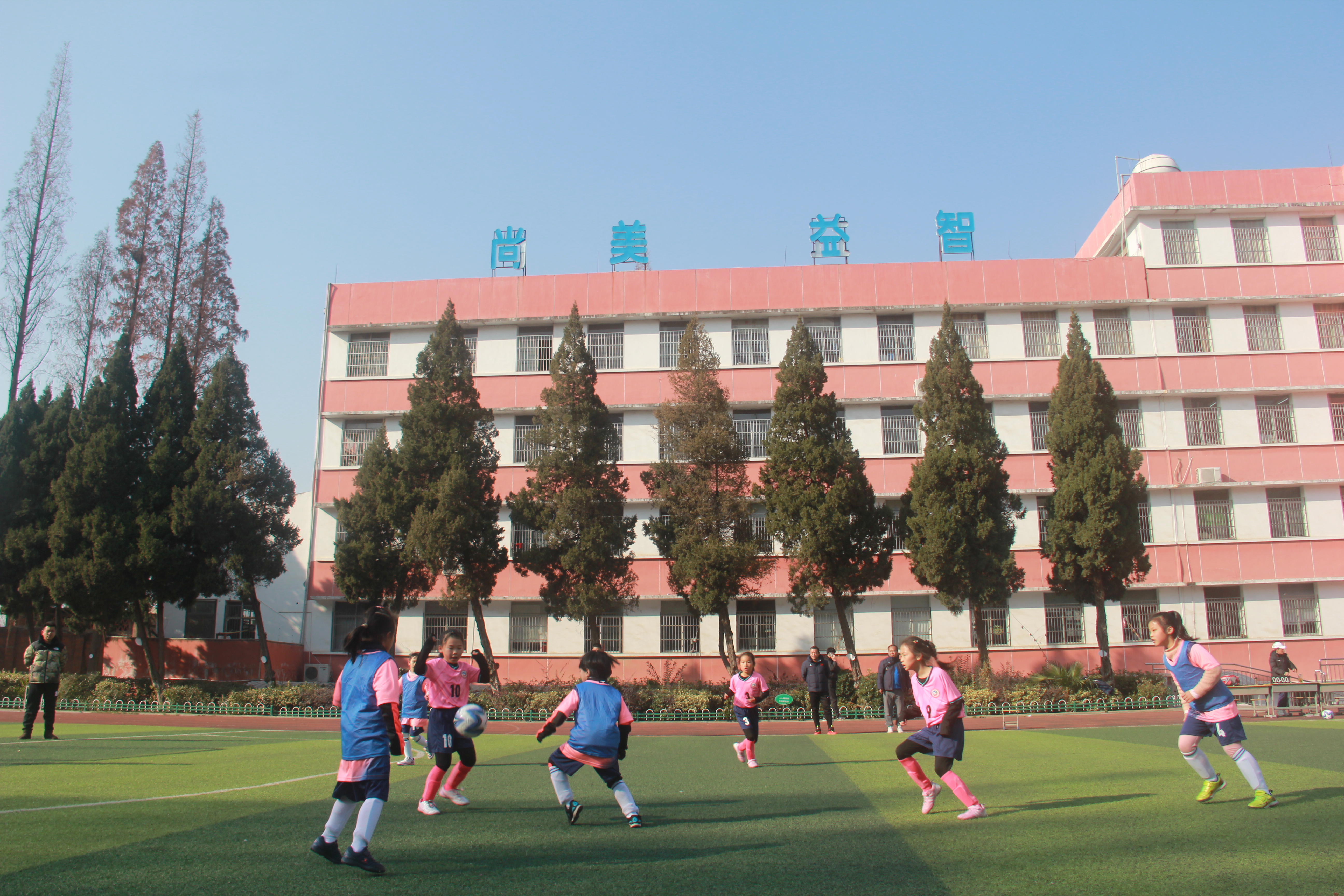 髫年足下競技狂,頑強拼搏綠茵場。12月25日下午,在湖北省安陸市實驗小學教聯體儒學校區的足球場上,一場特別的足球賽激戰正酣——場上追逐着足球快速奔跑着的是一群七八歲的女娃娃,如果不是親眼所見,你很難相信,一個個平日裏在老師和家長那裏嬌憨稚氣的女娃娃,竟然搖身一變而成為腳底生風、虎虎生威的足球健將,運球、搶斷、射門,每個動作都訓練有素,頗有章法。傳中插上,配合到位,快速跟進,臨門一腳,場上激烈的足下爭搶博得觀眾的陣陣喝彩。在她們身上,我們看到了安陸女子足球美好的明天,一朵朵鏗鏘玫瑰之花正在悄然盛開。