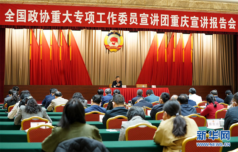 10月26日上午,全國政協重大專項工作委員宣講團舉行重慶宣講報告會。新華網 馬天龍 攝