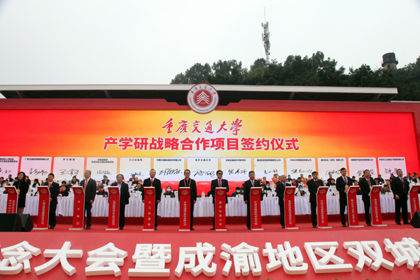 12月12日上午,重慶交通大學建校70周年紀念大會暨成渝地區雙城經濟圈交通發展高峰論壇開幕式在重慶交通大學南岸校區舉行。會上,重慶交通大學與12家單位共同簽署産學研戰略合作項目協議,推動政産學研用深度融合,促進開放辦學跨越式發展。