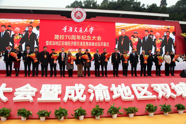 重慶交通大學建校70周年紀念大會暨成渝地區雙城經濟圈交通發展高峰論壇開幕式現場。