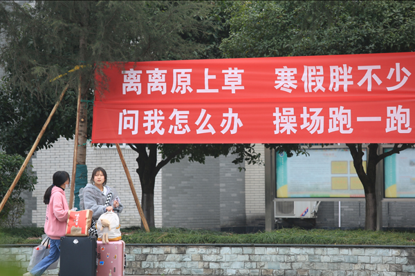 “我最喜歡‘離離原上草 春節胖不少’這條標語,因為假期確實胖了很多,正好督促我好好運動。”來自該校會計專業的鄭明月説。